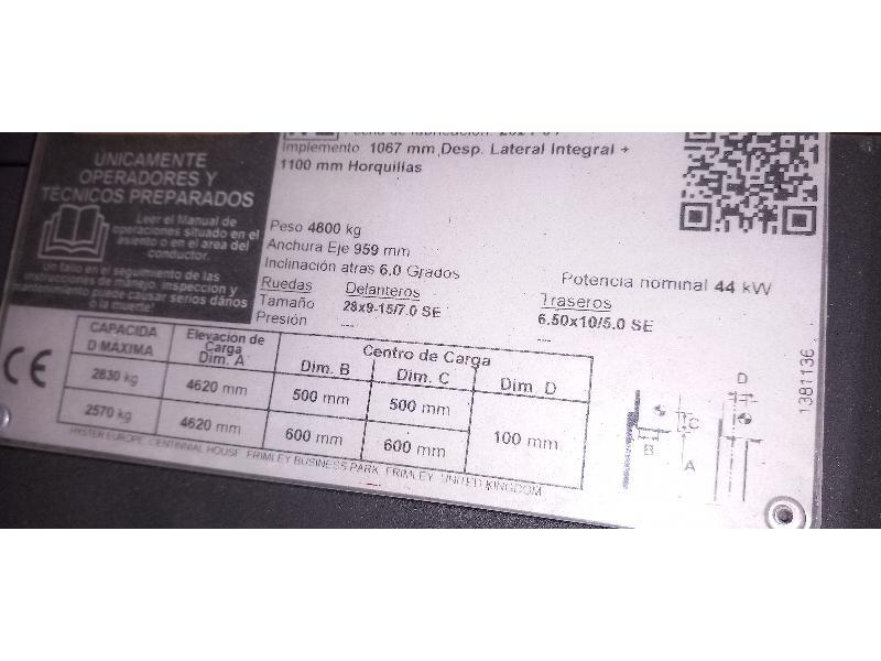 • Equipement specifique : Pack reduction du bruit, Dosseret d’appui de charge de 1220 mm de haut, Clear View Overhead Guard, plateau de console, Poignee de marche arriere avec bouton d’avertisseur sonore, Afficheur standard : Ecran tactile couleur 127 mm, Siege a suspension totale en vinyle, Ceinture de securite standard, Equipement Hyster Vision,